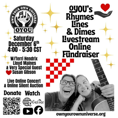 Terri Hendrix's nonprofit charity, Own Your Own Universe (OYOU), is proud to participate in #GivingTuesday on December 2. Your donation will help us gain traction for our 2026 programming! The OYOU provides accessible and affordable music, writing, and creative arts programs for people of all ages and abilities. Join us on this global day of generosity and help us transform lives through creativity, connection, and community.