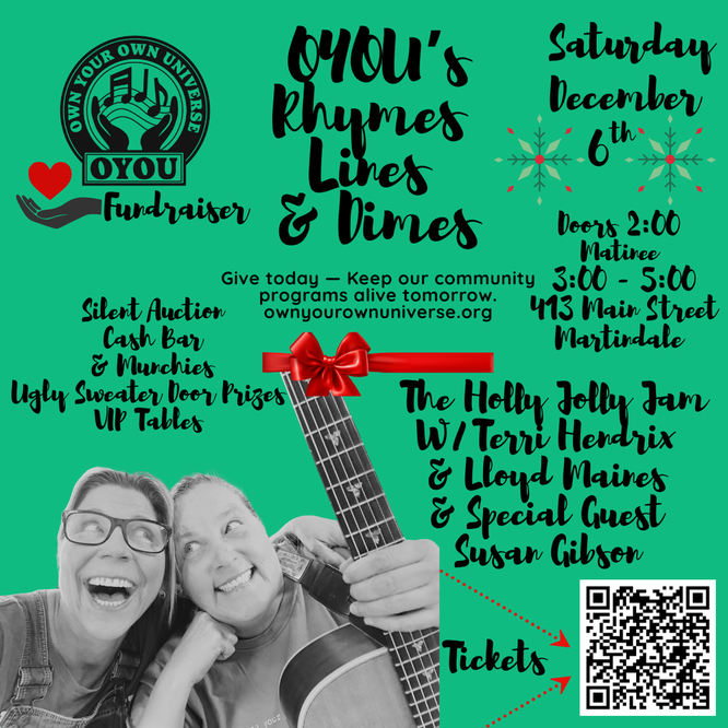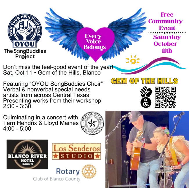 Own Your Own Universe (OYOU) is a 501 C3 non-profit organization based out of San Marcos and Martindale, Texas. It is our mission to make the arts accessible to everyone, and particularly to empower and transform lives by connecting the mind, body, and spirit through music and the creative arts. We do this by offering free and or low-cost events to the communities we serve.